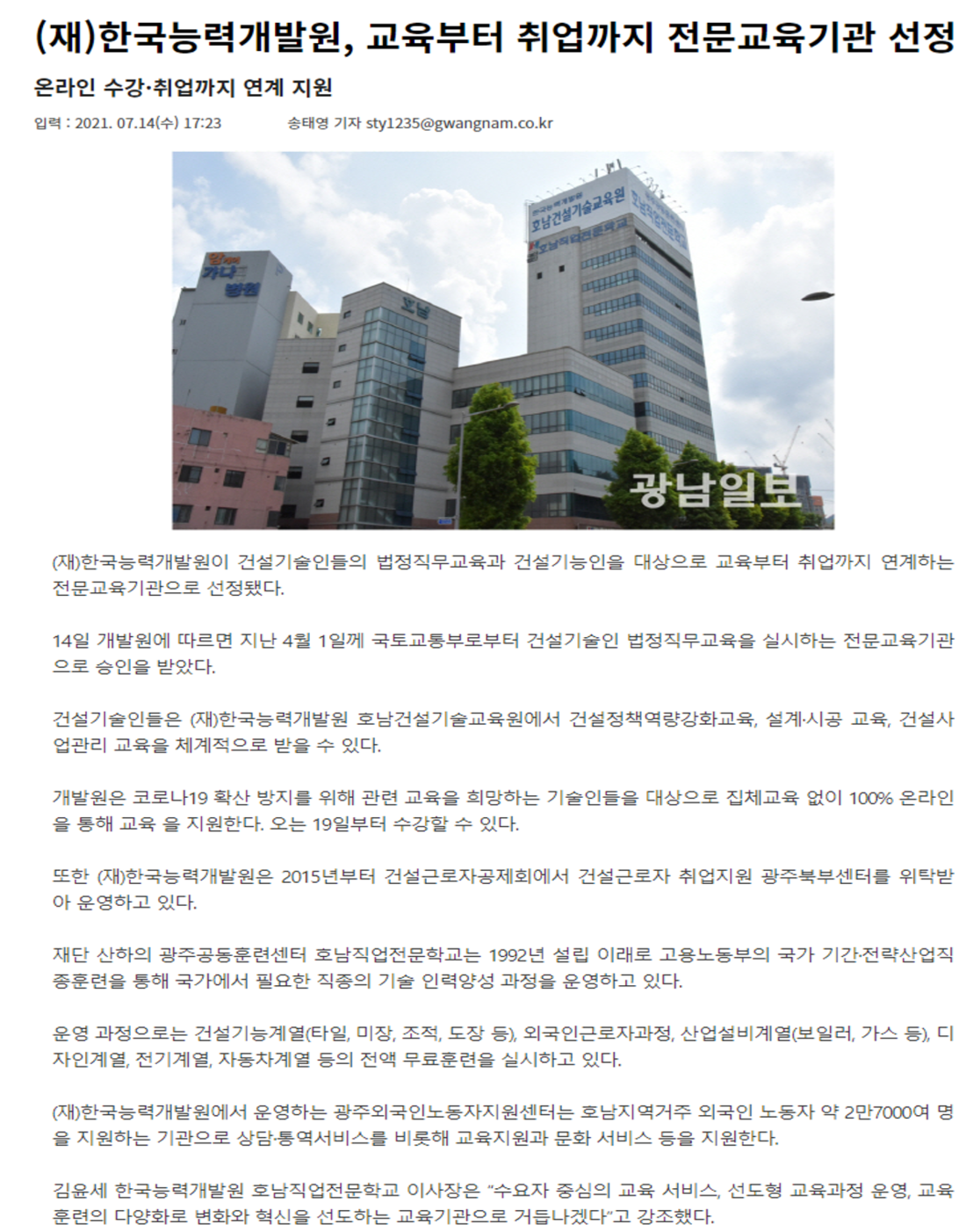 | (재)한국능력개발원, 교육부터 취업까지 전문교육기관 선정 | 운영자 / 2021.07.15 | |