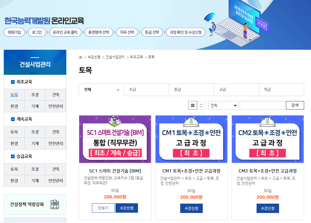 CM2 토목+조경+안전 고급과정 [최초] 건설사업관리 > 고급 건설기술인 > 최초교육 > 토목, 조경, 안전 직무분야
