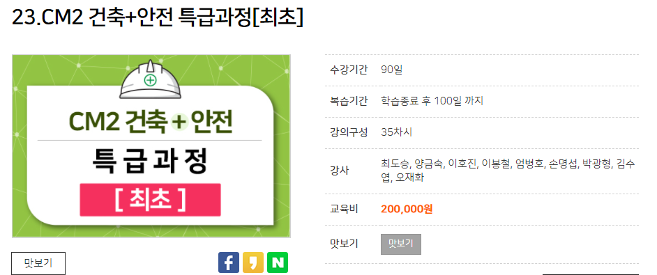 | 건설사업관리 CM2 건축+안전 특급과정 [최초] 개강 안내 | 최고관리자 / 2021.08.23 | ||||||||||||||||